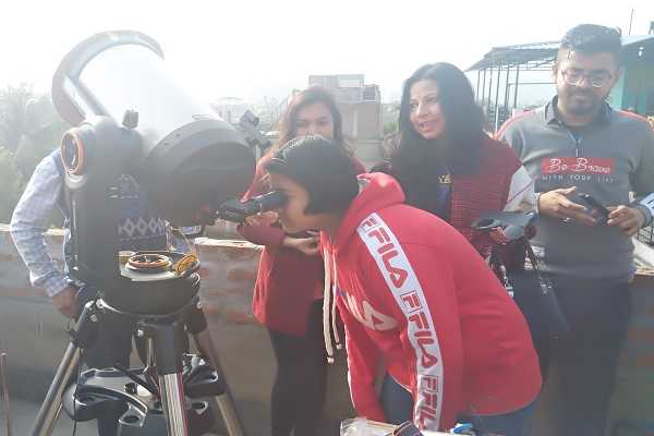 A Child Watching Solar Eclipse through the high end telescope of USTM in Guwahati on 26 December 201...