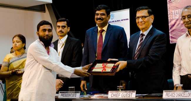Dr Mridul Hazarika, former VC, GU receiving the “Outstanding Academic Leadership Award†...