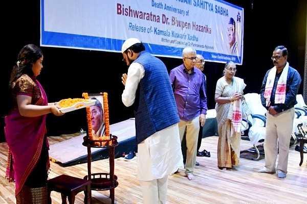 USTM Chancellor Mahbubul Hoque offering floral tribute to Dr Bhupen Hazarika on his 8th death annive...