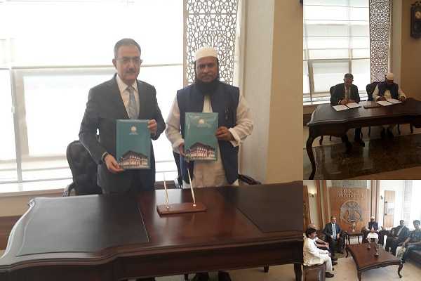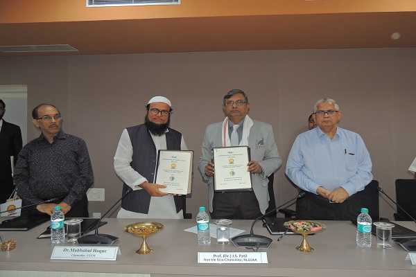 Prof. (Dr.) J. S. Patil, Vice Chancellor of NLUJAA and Mahbubul Hoque, Chancellor of USTM signed MoU...