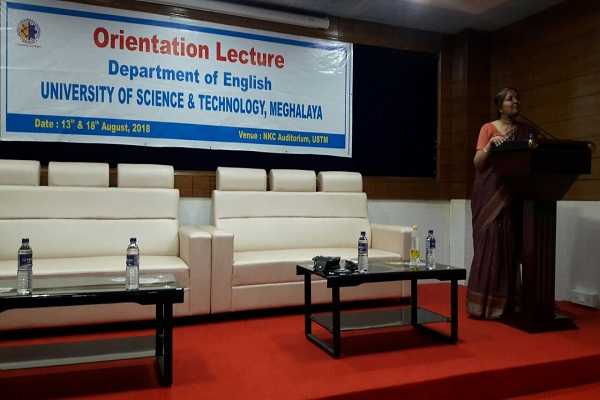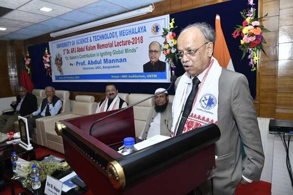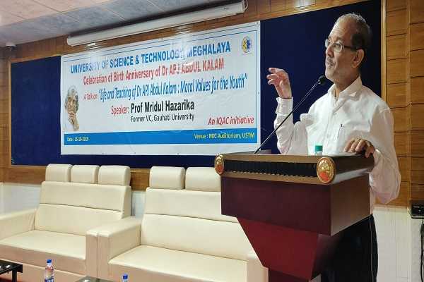 Dr Mridul Hazarika, former VC, Gauhati University and Principal Advisor to USTM delivering a talk on...