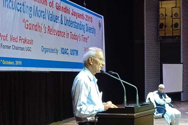 Prof Ved Prakash, UPSC Chairman delivering speech on Gandhiji at USTM on 1st October 2019...
