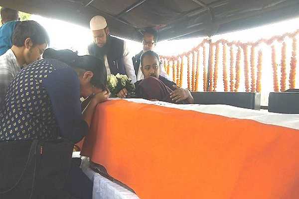 USTM Chancellor Mahbubul Hoque paying tribute to Dr Donkupar Roy at Guwahati airport on 29th July 20...