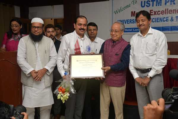 Mahbubul Hoque, Chancellor USTM receiving the prestigious ‘Sikshacharya’ award by Asam ...